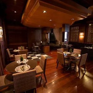 Os hóspedes são convidados para o restaurante Araucaria para apreciar os pratos deliciosos.